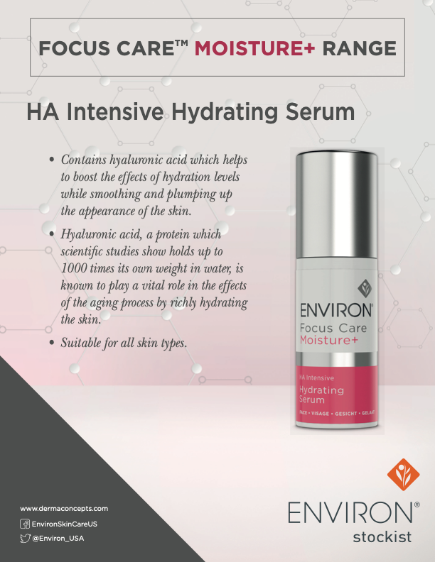 HA Intensive Hydrating Serum contains a high concentration of Hyaluronic Acid. The moisture binding characteristic of this special molecule helps improve dehydration, leaving the skin visibly smoother and plumper with more resilience.