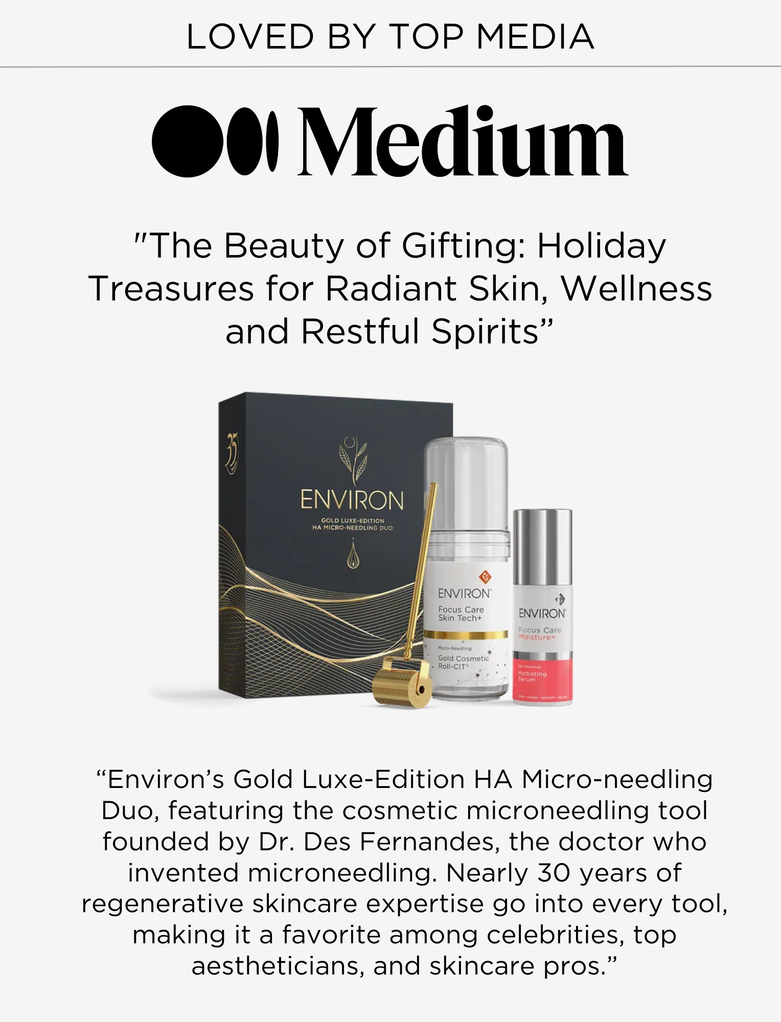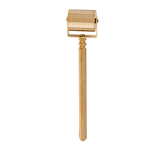 This precision crafted luxurious 14kt gold plated cosmetic micro-needling instrument is embedded with 260 ultra-fine surgical grade stainless steel needles 0.2mm in length. The Environ Gold Roller naturally suppresses bacterial growth, is easy to clean and enhances the effectiveness of Environ products.