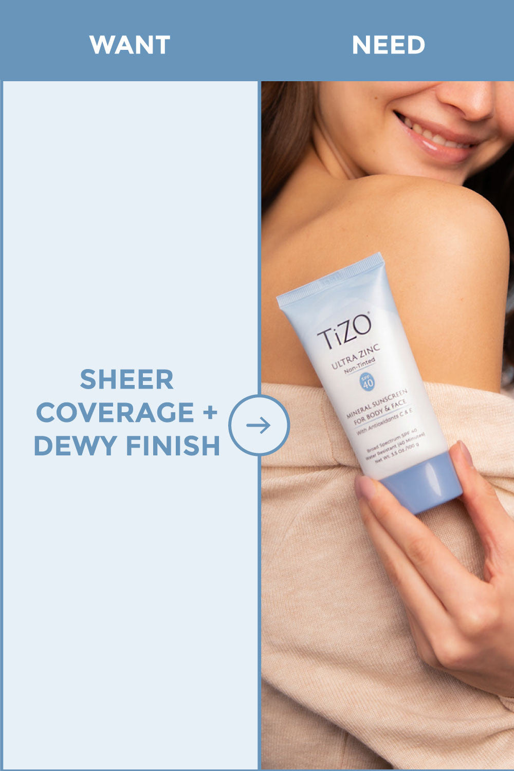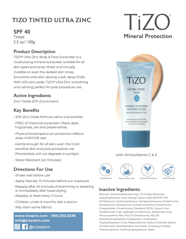 TIZO® Ultra Zinc Body & Face Sunscreen is a moisturizing mineral sunscreen suitable for all skin types and tones. Sheer and virtually invisible on even the darkest skin tones. Smoothes onto skin, leaving a soft, elegant finish.